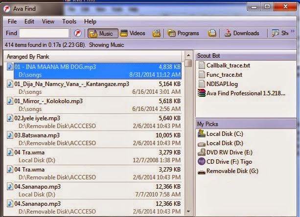 What’s more, you can make Ava Find display the audio files, clips, installed programs or a list with the downloaded items. The results can be sorted by rank, name, location, size, type, as well by the date when the files were created, modified or last accessed.